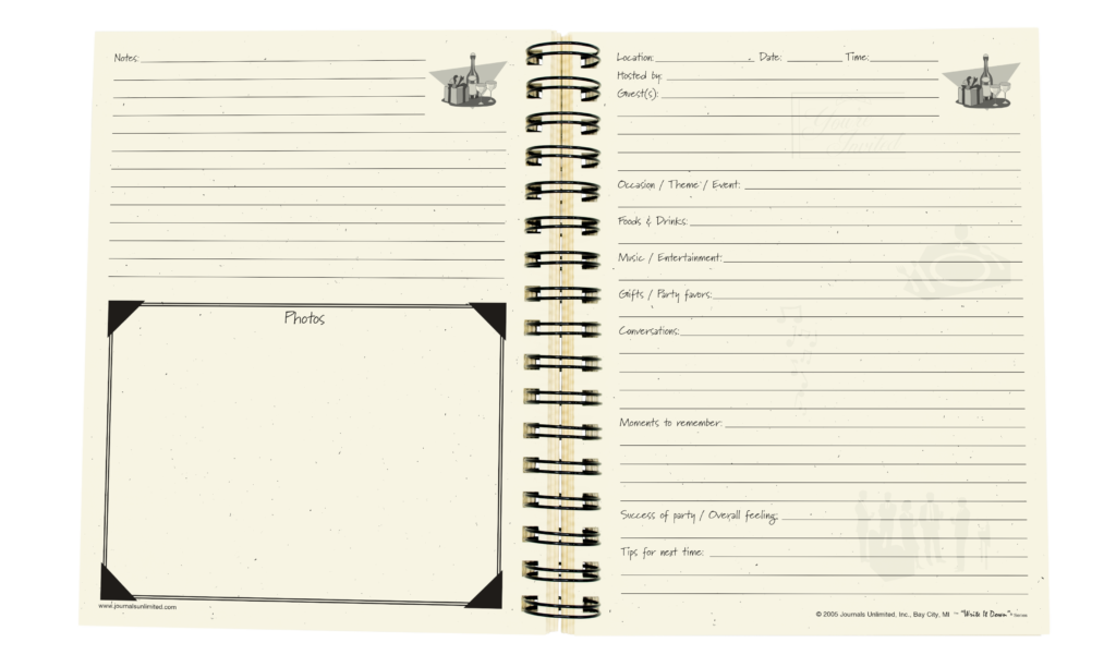 Hosting a party? Whether you’re having a simple dinner party with friends, planning your next birthday party for the kids, throwing your own girls-night-in or gathering the family for a holiday; we have a journal for you! This guided format will not disappoint with ample space to record all the pertinent information and memories from all of your fabulous parties. From the guest list to the food & music to the conversations; “Write it Down!”. With this journal, all of your parties will be unforgettable!