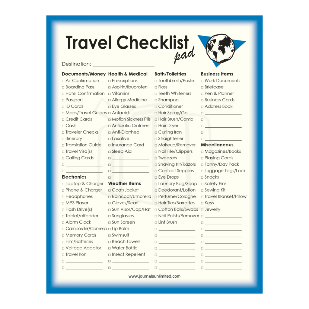 Utilizing the Travel Checklist notepad while you pack can save you from yourself. With this notepad, you won’t forget those oh-so-important items you might have trouble acquiring at your destination.