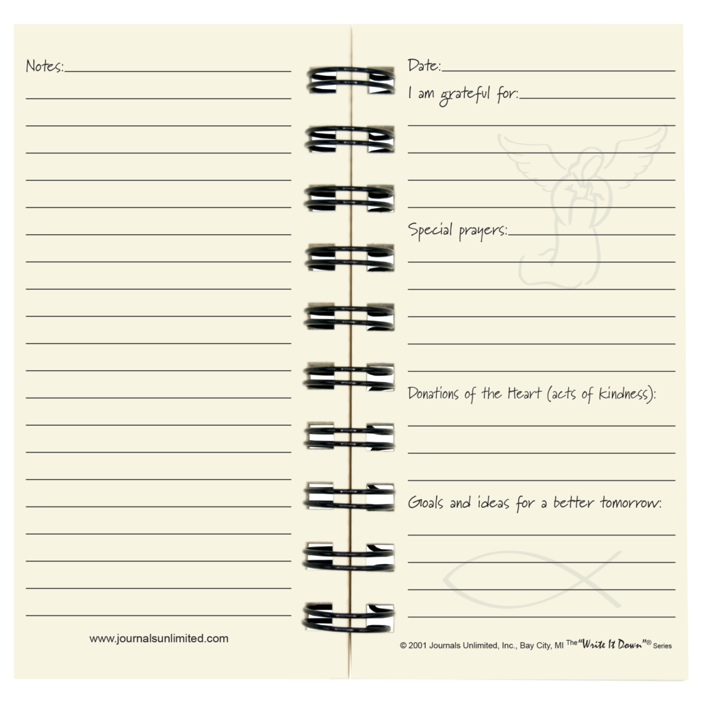 Remember to walk the talk and stay in touch with your spiritual side. This journal facilitates daily devotions and builds faith. Write down your thoughts in times of joy and sadness, your inspirations and answered prayers…whatever you may need to help you stay focused on your spiritual goals. This is your most important journey!