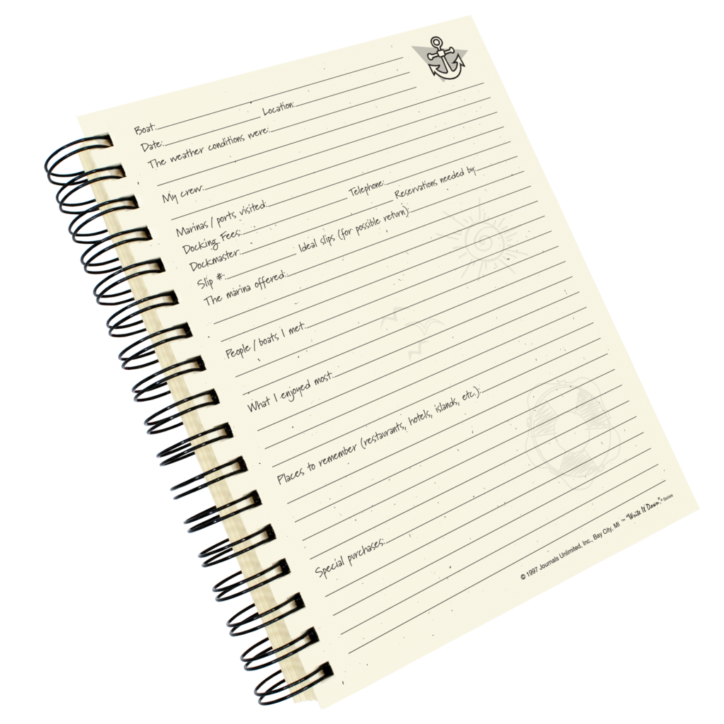 I’ve been using these journals to record my boating experiences on Lake Michigan for over 8 years. What a great place to record your things for recalling your past boating travels. This journal has entries for weather, ports you visit, people you meet along the way, and much more.
