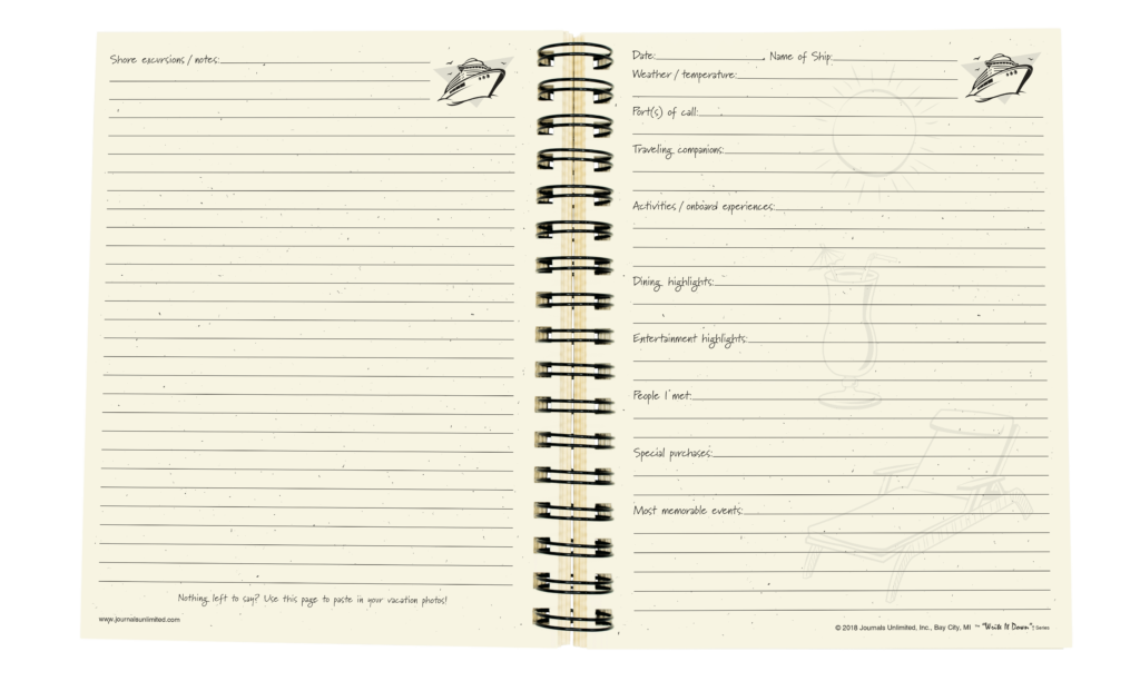 I love my cruising journal!! I fill it with pictures and embellishment along with the writing!