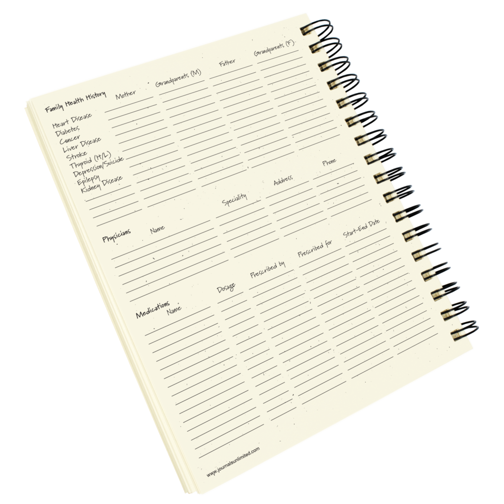 How many of us really remember when our last tetanus shot was, when we last had our vision tested, or how our cholesterol has changed in the last 5 years? Track all of your medical appointments, lab results, and procedures in this one-of-a-kind medical journal. Lead-in pages let you record current stats, health history, physicians, medications, etc. This journal is a great way to keep all your medical info (or info for your children/family) in one place, whether you are healthy as a horse or have a chronic illness. When it comes to your health – you are your own best advocate!!