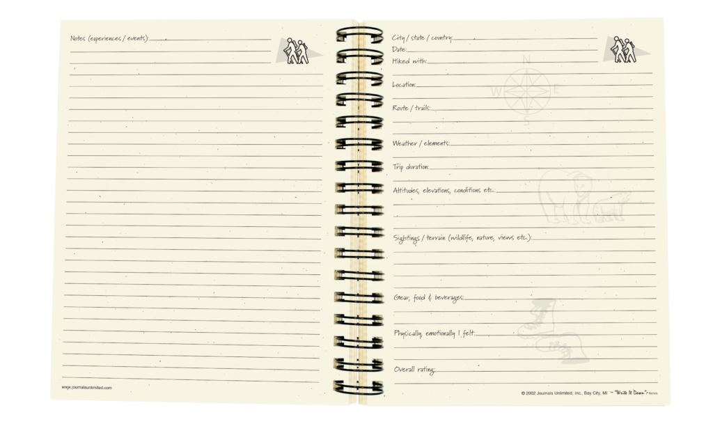 This is a fabulous journal! I love recording the details of special hikes and then describing what I saw and experienced during the hikes. Great idea! Wish these were available in Canada. I want to give one to each of my hiking friends.