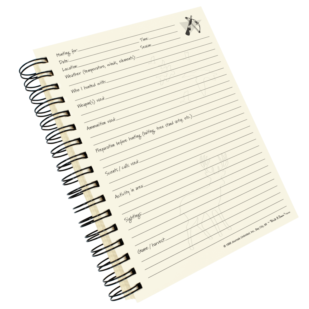 Don’t forget to personalize it with an image and/or text! Prompts inside including; Ammunition used, Preparation before hunting (baiting, tree stand setup, etc), Scents and calls used, and Sightings. The backside of every page is lined for special notes and memories for a better experience next time out or a good laugh later. *Available in kraft-brown or pumpkin.
