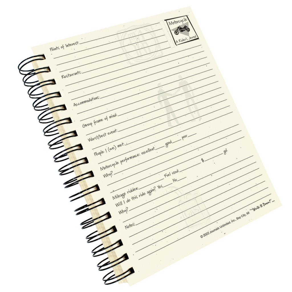 Recently discovered hiding in our warehouse! Circa 2003 Vintage / Retro Edition. Don’t ever forget why you enjoy the Ride. This journal covers it all from safety checks, new friends met, experiences along the way and most of all – memories that make you want to ride even more. For a journey like no other!