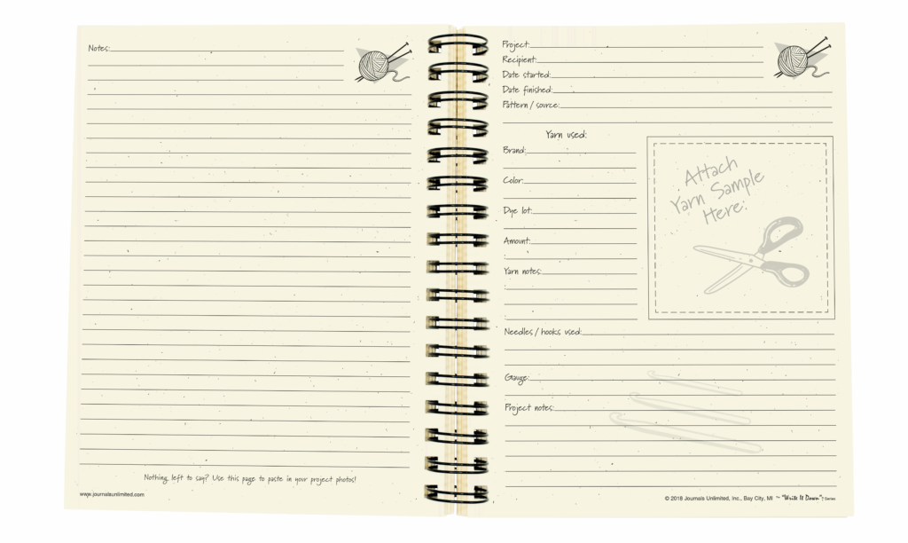 By popular demand, we’ve created a journal just for knitting & crochet projects! Keep track of important info about products used to create your masterpiece. Include a yarn sample and an image of the finished product too!